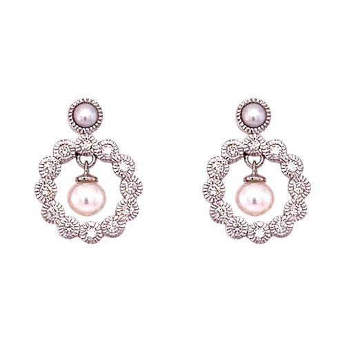 Diamonfire Cubic Zirconia Shell Pearl Deco Drop Earrings