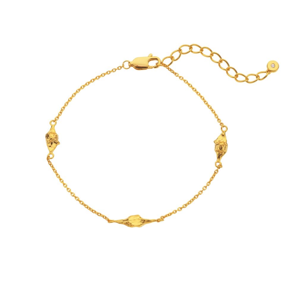 Be your own Muse and adorn yourself with these golden organic curves. Featuring a beautiful texture, Muse catches the light beautifully. Crafted in 18ct gold plate and sterling silver and hand-set with a real diamond, this bracelet measures 17cm - 21cm.