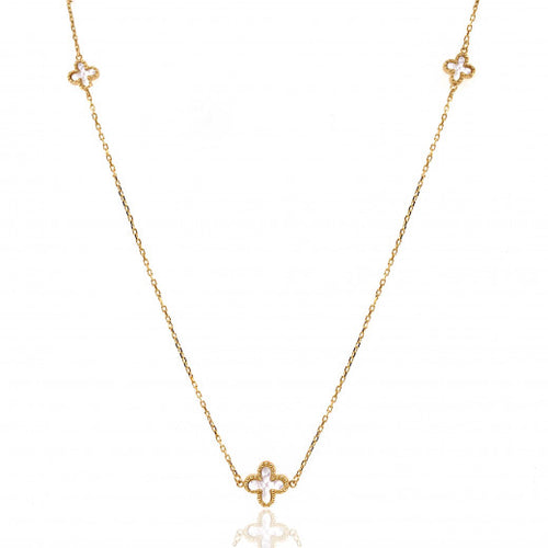 9ct Gold Mother Of Pearl Trefoil Station Necklace
