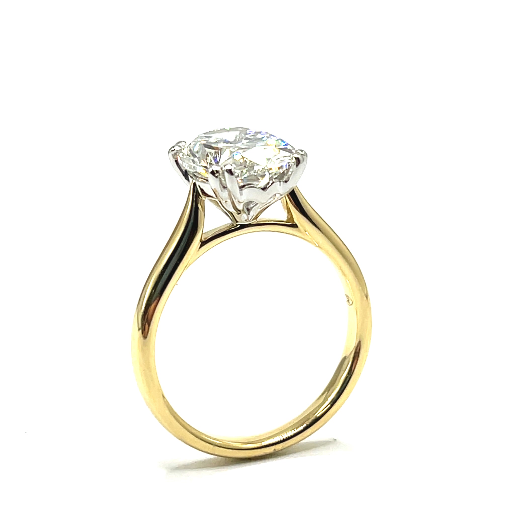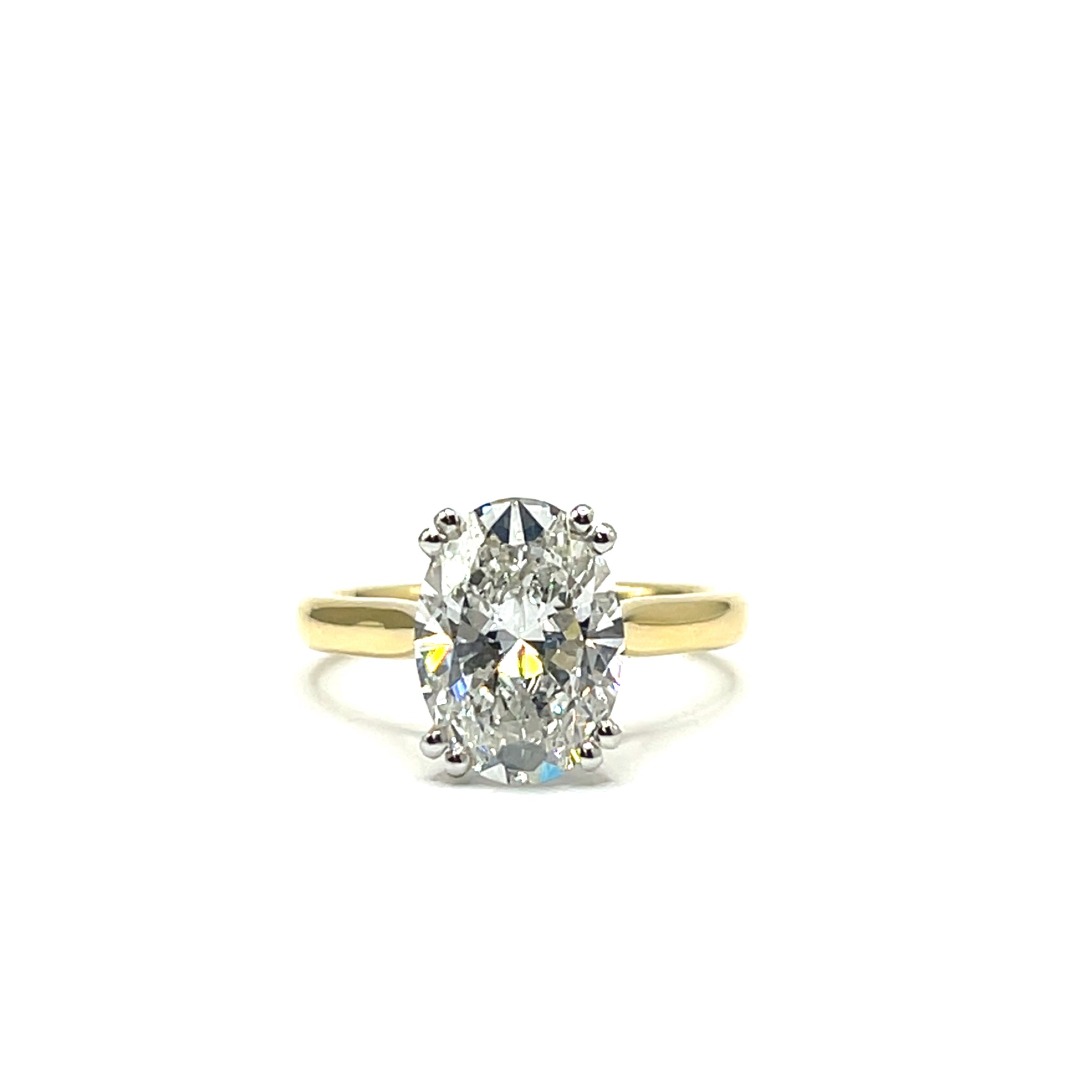Make a statement with this breathtaking 3.51ct oval lab grown diamond ring, expertly crafted in luxurious 18ct yellow gold with an elegant & durable Platinum claw setting.
