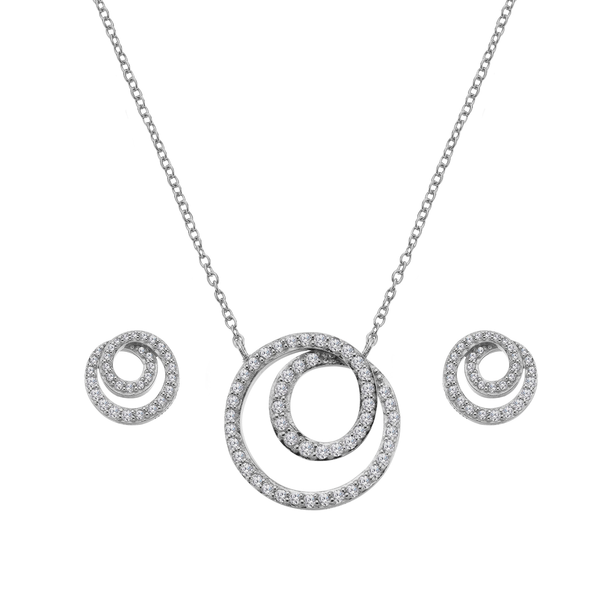 Sterling silver linked circles necklace and matching earrings. Encrusted with sparkling wite Topaz gemstones and set with a single diamond.