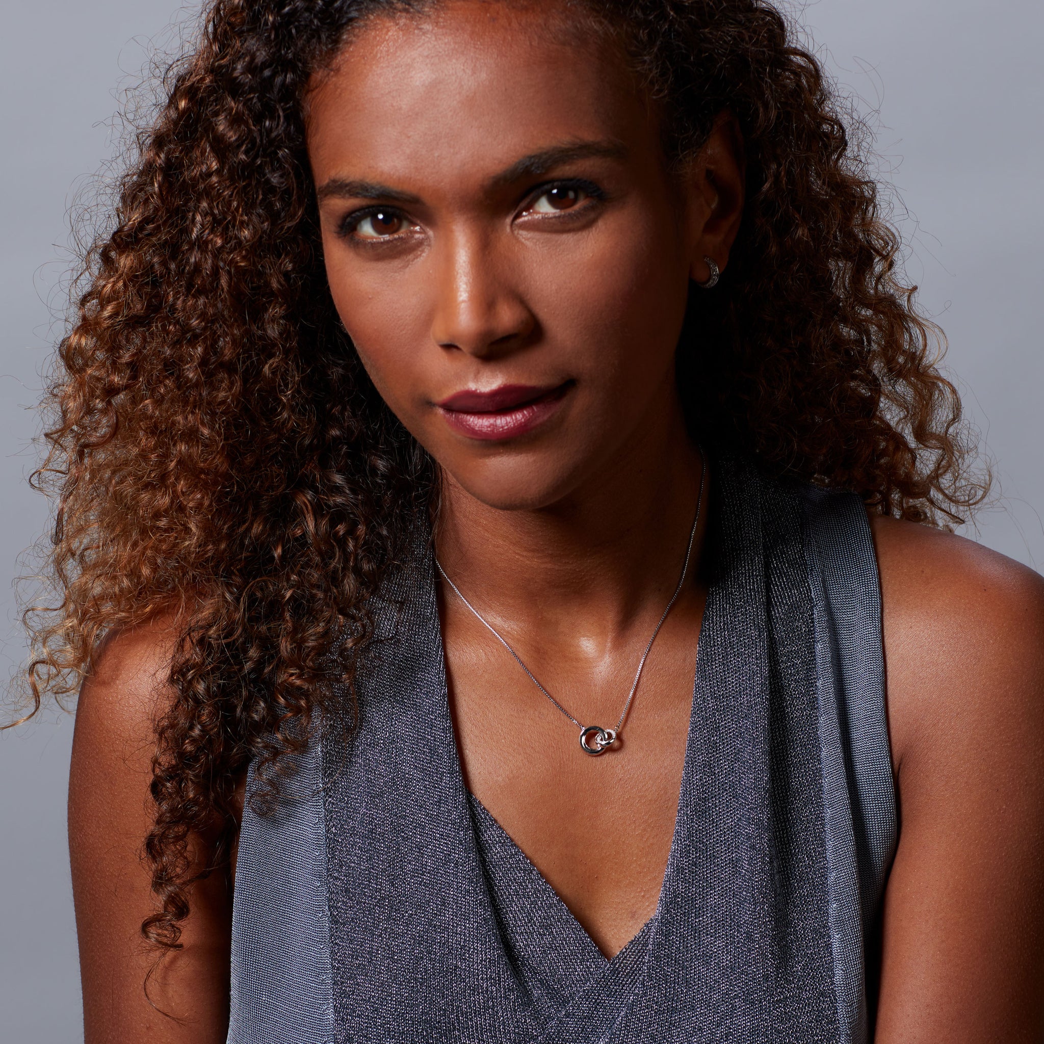 Our bestselling Bevel necklace has re-emerged, better than ever. The linked circles have been upgraded and are now also available in rhodium plated sterling silver set with sparkling cubic zirconia, intricately weaving its sparkle around each edge of the encircling Bevels. No design detail has been spared in perfecting this ultimate go-to necklace.