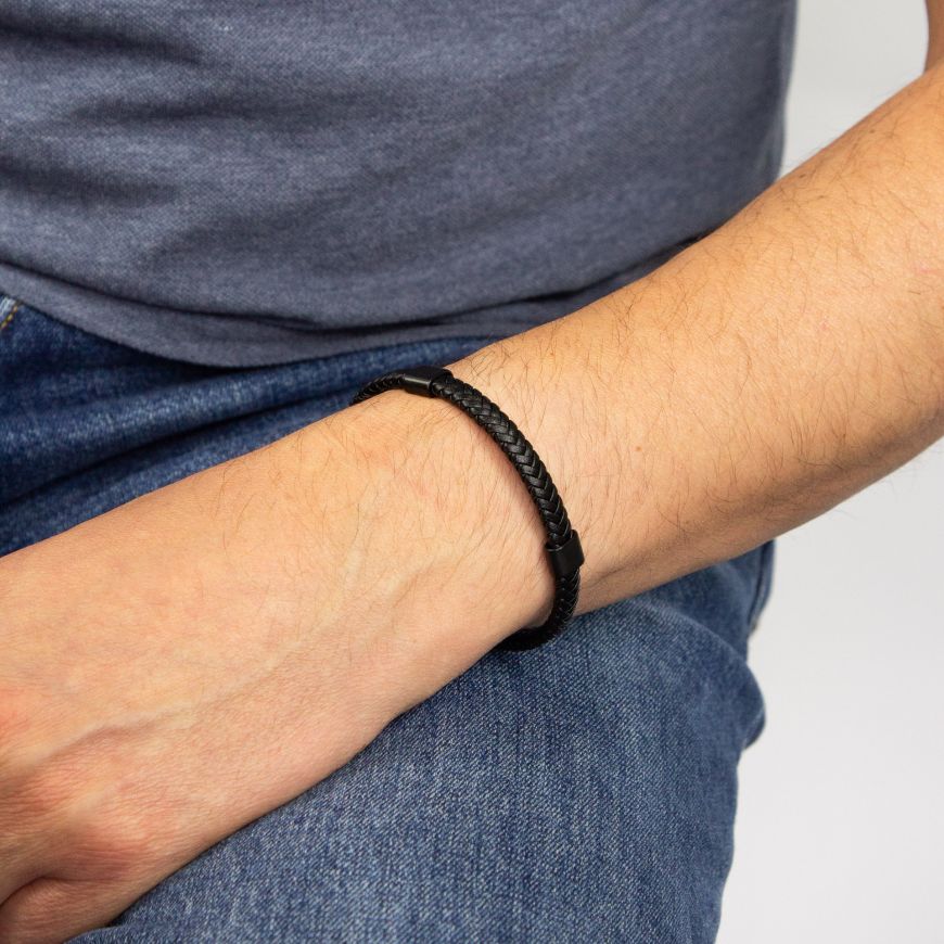 Part of the new Fred Bennett Reborn collection, this recycled genuine black leather plaited bracelet with black IP is sure to stand out from the crowd. With a total length of 21cm and featuring a magnetic clasp, this piece will make the perfect gift for a loved one who is conscious about the sustainability of what they buy and wear. Items included in our Fred Bennett Reborn collection are made from scraps of genuine leather that are recycled in a very similar process to how paper is recycled. With on trend colours, textures and designs there is something in this collection for everyone!