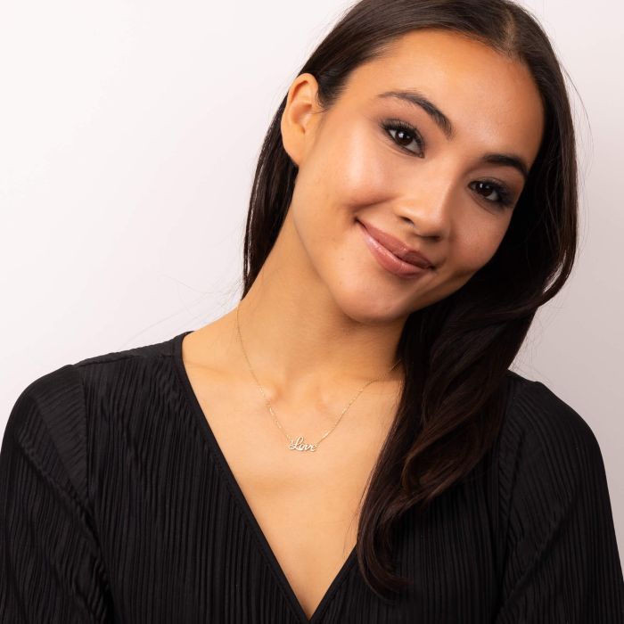 Embrace elegance and sentimentality with this beautiful 9ct yellow gold necklace, meticulously crafted to spell the timeless word, "Love". This stunning piece is a testament to both style and emotion, blending graceful design with heartfelt expression.