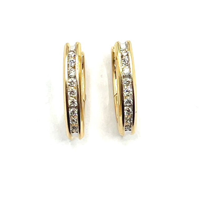 Secondhand 14ct Yellow Gold Diamond Set Hoop Earrings