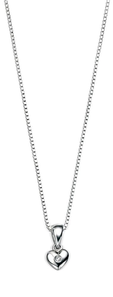 This gorgeous sterling silver girl's heart shaped pendant set with a single sparkling diamond is a popular classic. This beautiful piece of children's jewellery is one of our most popular, best selling pieces as it is such a pretty and timeless choice. Perfect as a christening keepsake or a beautiful first diamond gird for any little girl this adorable little necklace is sure to delight. Sweet and petite, this charming pendant shines prettily in 925 sterling silver and the ethically sourced genuine diamond twinkles from the centre. You really can't go wrong with this one.